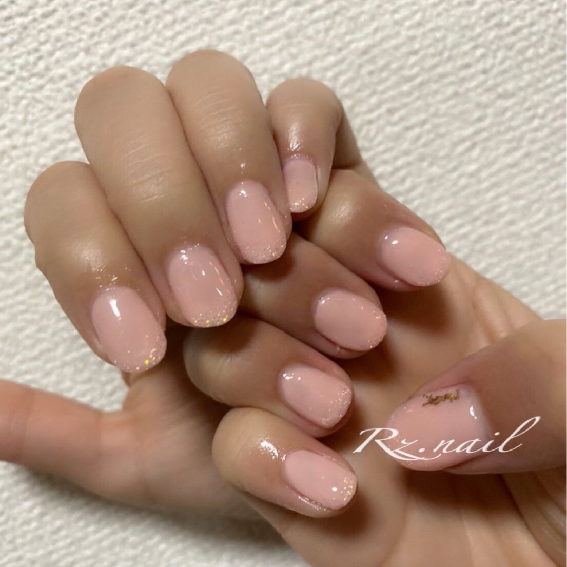 ピンクベージュグラデーション シェルジェルネイル 上前津 大須の